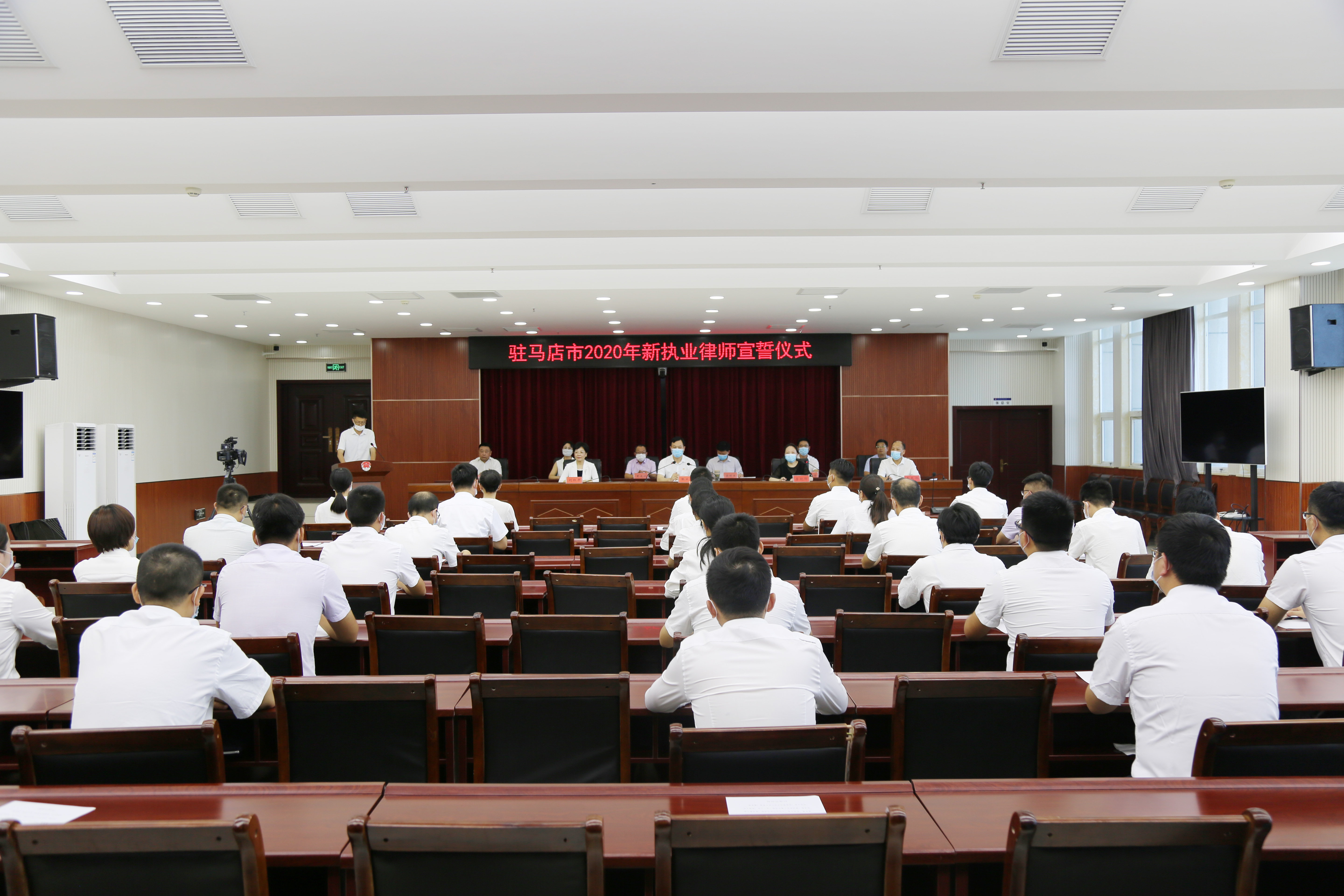8月18日上午,驻马店市司法局、市律师协会在市司法局十五楼会议室举行新执业律师宣誓仪式。市司法局党委书记、局长张卫东,市司法局律师科科长王太旭、市律师协会会长刘红平等领导出席仪式。仪式由市司法局党委委员、政治部主任李艳晖主持。