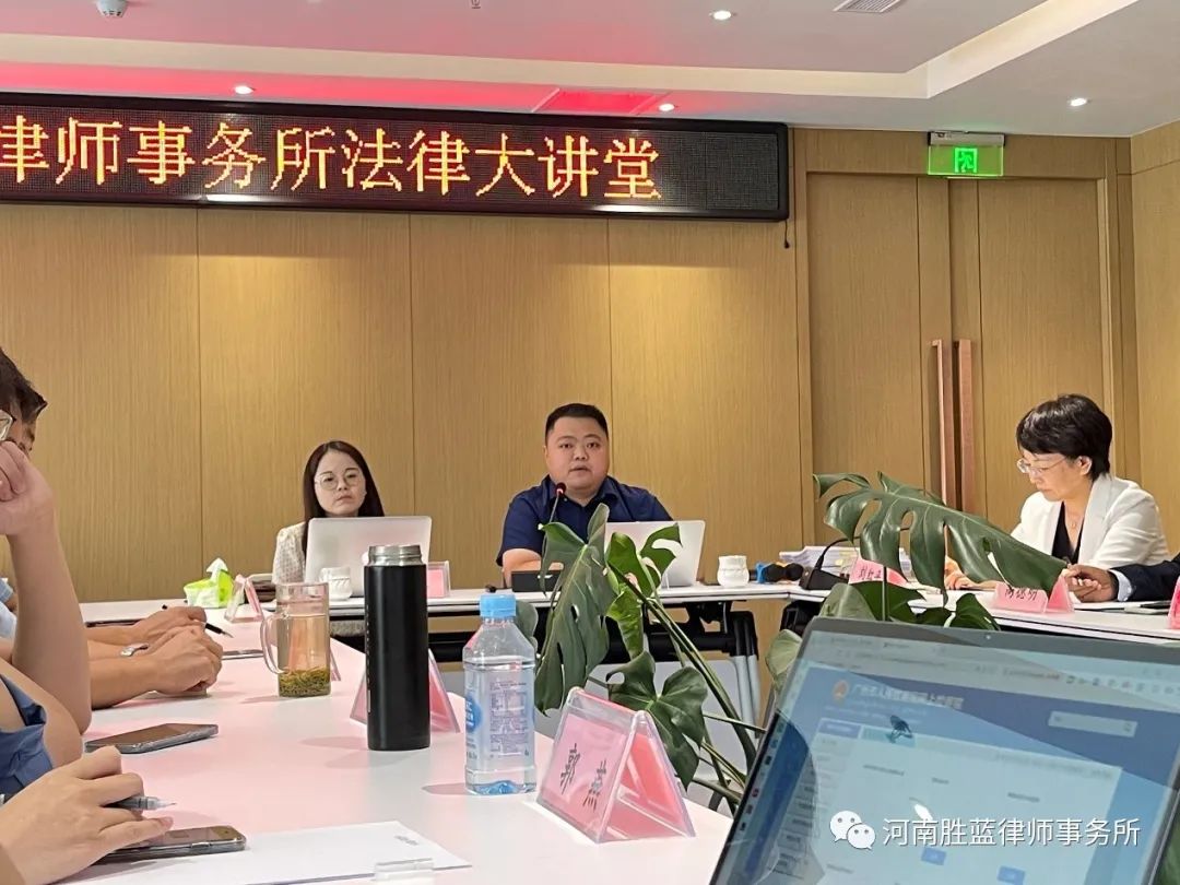 河南胜蓝律师事务所法律大讲堂 添加时间:2021-09-09 16:48:00 业界动态 阅读:1464 来源:admin 2021年9月7日下午,河南文丰律师事务所合伙人、公司业务部牛范淇主任和投融资部朱奇慧律师莅临我所,就债券发行等内容对我所律师进行专题培训。