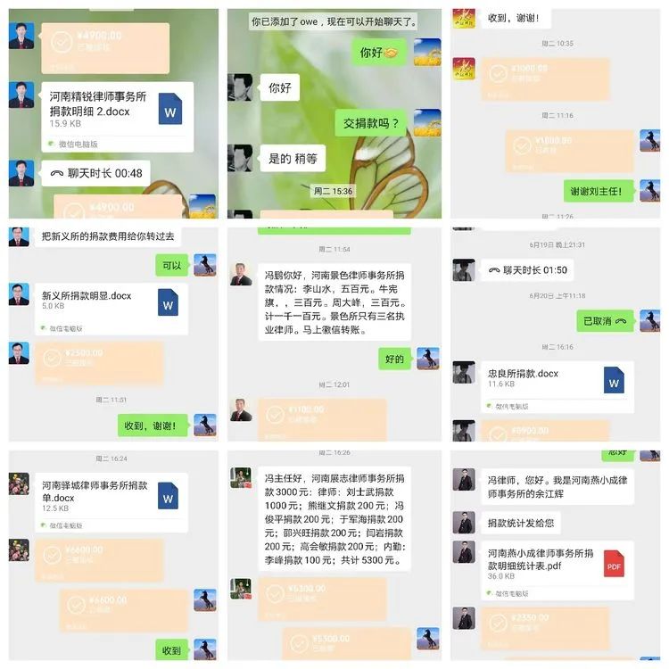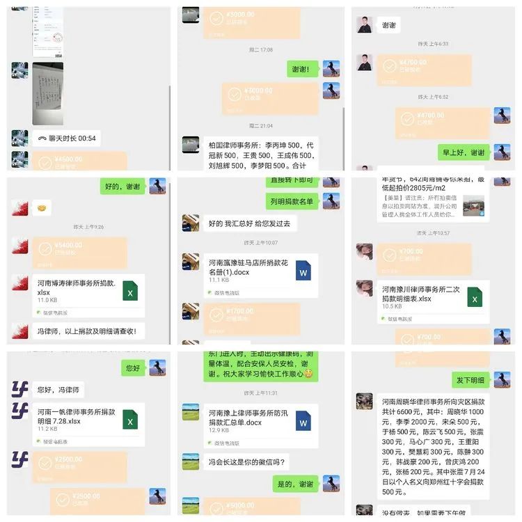 洪水无情人有情,大灾面前显大爱!为帮助灾区群众尽早度过难关、重建家园,驻马店市律师协会根据河南省律师协会《关于律师行业参与抢险救灾工作的倡议》,紧急向全市律所发出爱心捐助倡议书。抗洪救灾的战场,更是爱心跃动的赛场,律师们收到倡议书后,纷纷慷慨解囊,踊跃捐款。驻马店市律师协会秘书处随后接到各律所捐款微信转账信息,捐助款犹如涓涓细流不断汇入爱心海洋。除了我市部分律师先行以其他渠道向灾区捐款捐物外,来自全市的487名律师共计捐款160701元。
