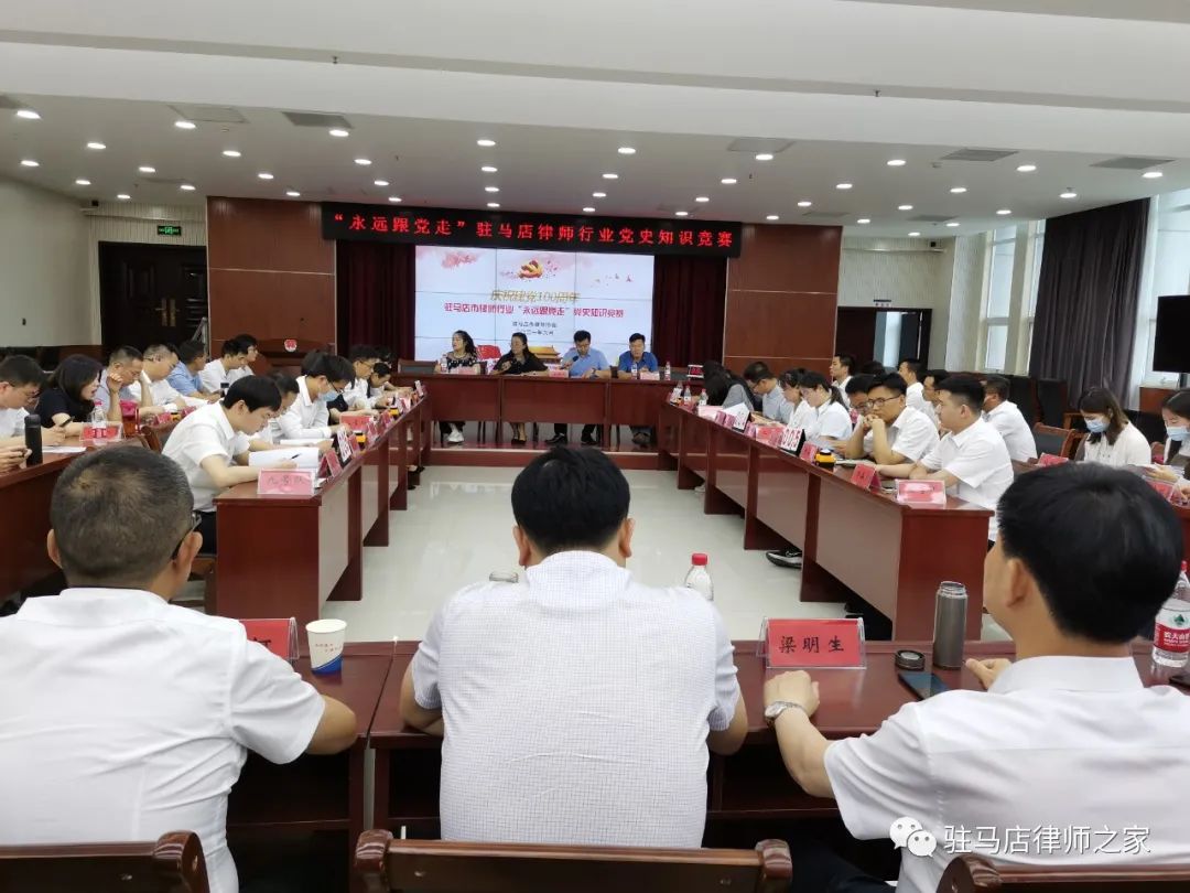 为迎接建党100周年,进一步推动党史学习教育走深走实,发扬红色传统、传承红色基因,6月19日下午,驻马店律师行业在市司法局举行“永远跟党走”党史知识竞赛活动。