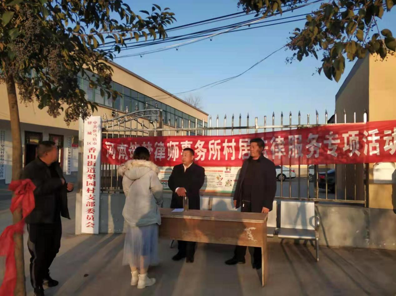 首先本所律师积极帮助所承包村居依法规范各项管理工作,及时帮助化解因婚姻家庭、劳务关系、交通事故、宅基地等引发的纠纷矛盾,引导村民通过正常渠道依法维护自己的合法权益。例如:驿城区香山办事处梨园村村民因相邻权纠纷与其邻居多次发生争吵,后经何银富律师从中调解,双方达成一致意见,当事人帮助其邻居共同修建排水管道。闫楼村与中国联通有限公司驻马店分公司签署《租赁使用协议》后,一直未履行租金支付义务,因此,何银富律师结合实际情况协助闫楼村村委向中国联通有限公司驻马店分公司发送一份《催款函》,以维护闫楼村村民利益。