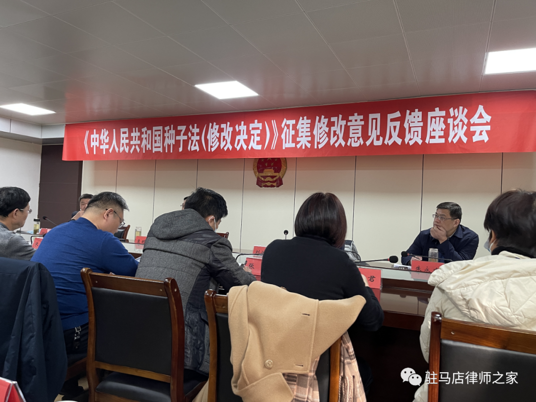 近日,驻马店市人大召开《中华人民共和国种子法(修改决定)》征集修改意见反馈座谈会,会议通报了《中华人民共和国种子法(修改决定)》征集意见建议工作开展情况,我市共有四条修改建议被全国人大法工委采纳,驻马店律师协会提出的多条修改建议中有一条被采纳。
