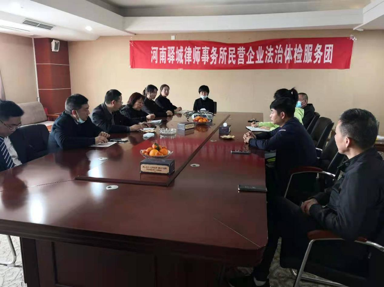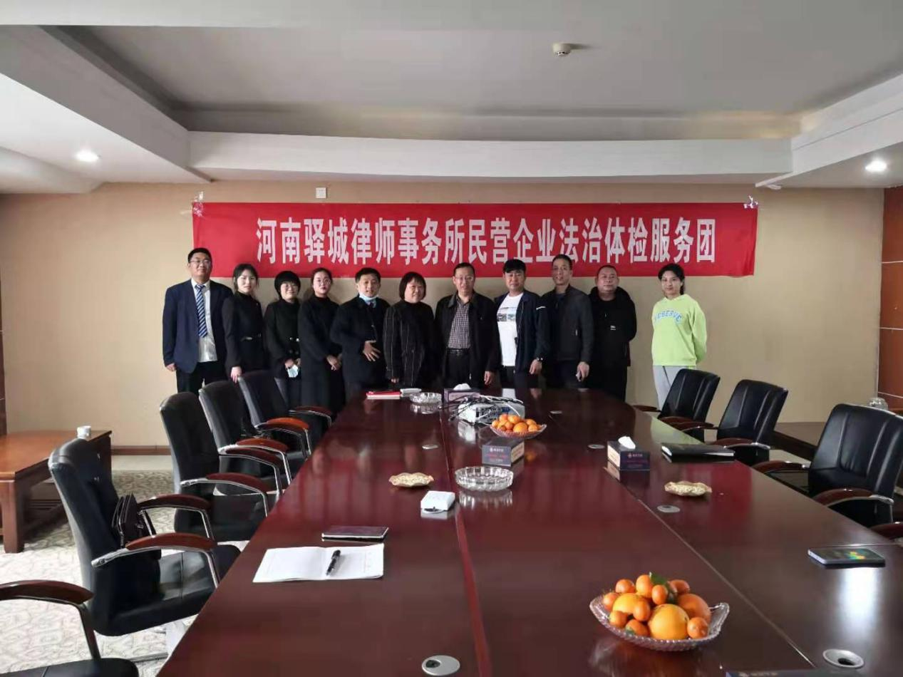 3月30日下午,河南驿城律师事务所主任李志清、副主任赵玉景、合伙人李杰带领该所民营企业法治体检服务团成员赵阳、王磊、刘朝靖、刘洋、李海燕一行8人走进泌阳县润鑫置业有限公司,为该公司进行“法治体检”。该公司金富成董事长进行了热情接待。