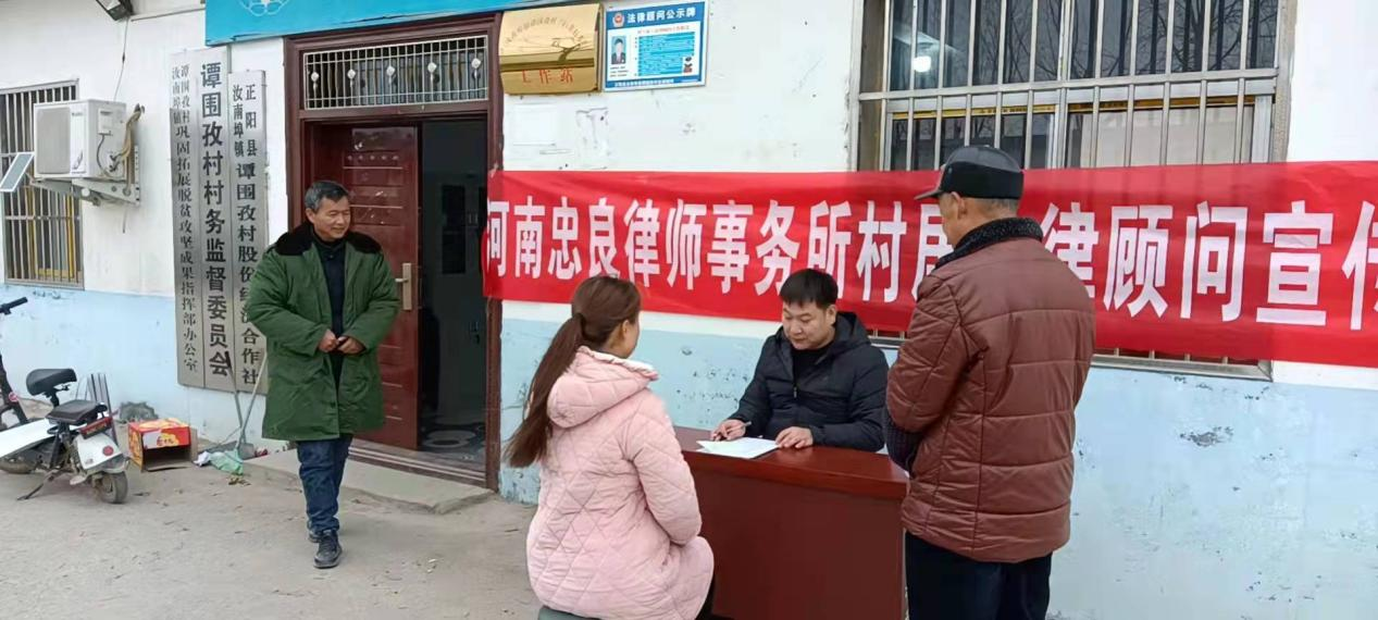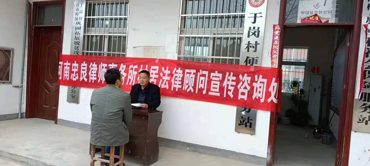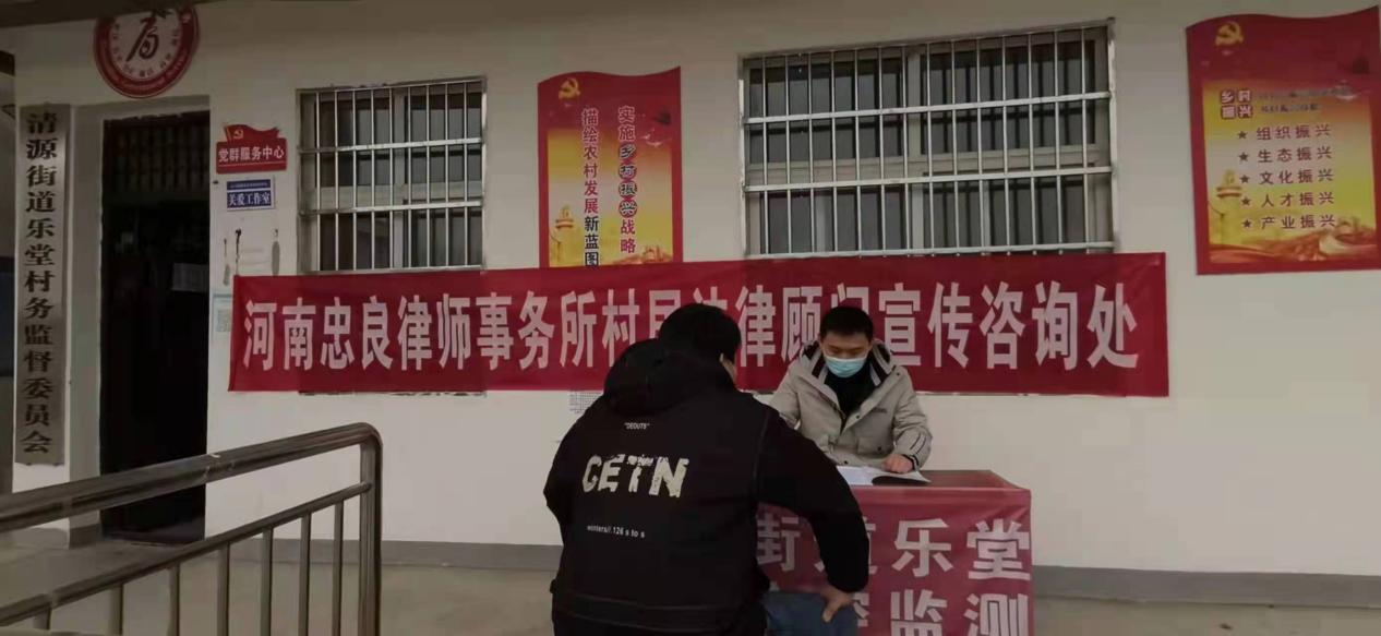 2021年12月,河南忠良律师事务所律师利用25、26号周末时间为群众提供法律服务,其中包括普法宣传讲座、现场咨询、电话咨询、现场调解纠纷等,赢得了村民的广泛好评。