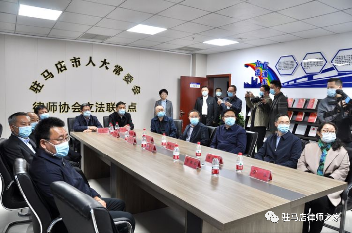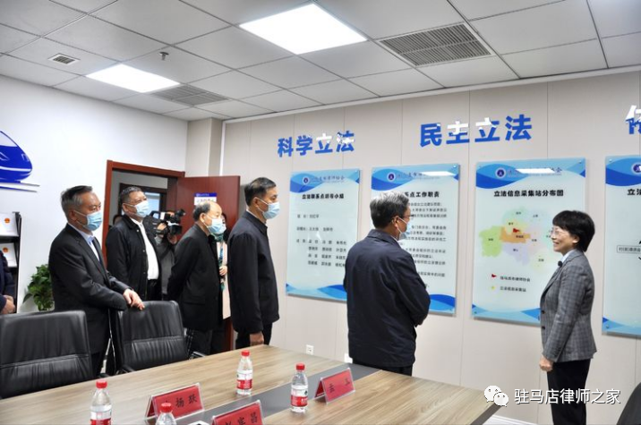 10月10日下午,全国人大常委会法工委副主任王瑞贺一行莅临驻马店市律师协会,专题调研指导基层立法联系点工作。省人大常委会副主任李公乐、驻马店市委书记鲍常勇、市人大常委会主任李宝清、副主任栗明伦、彭宾昌等领导陪同调研。