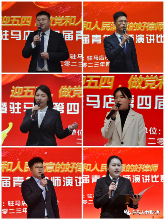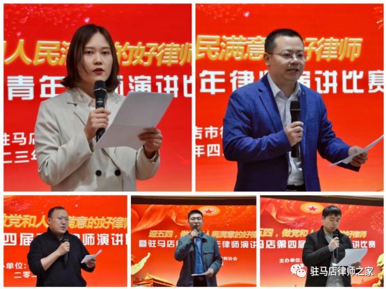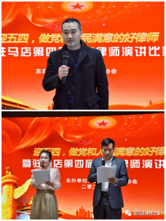 驻马店市律师协会成功举办“迎五四 做党和人民满意的好律师”暨驻马店第四届青年律师演讲比赛 添加时间:2023-05-11 17:21:50 业界动态 阅读:1879 来源:admin 4月23日上午,驻马店市律师协会在多功能会议室举办“迎五四,做党和人民满意的好律师”暨第四届青年律师演讲比赛。市司法局党委委员、政治部主任李艳晖、市律师协会会长刘红平应邀出席比赛。市律师协会副会长梁明生、副会长王伟、副秘书长兼青工委主任冯鹏、文宣委主任王丽华、女工委主任李艳萍、省律协青训营第二期学员、驿城所合伙人张坤等同志担任演讲比赛的评委,来自全市不同律师事务所的参赛选手及律师代表参加比赛。