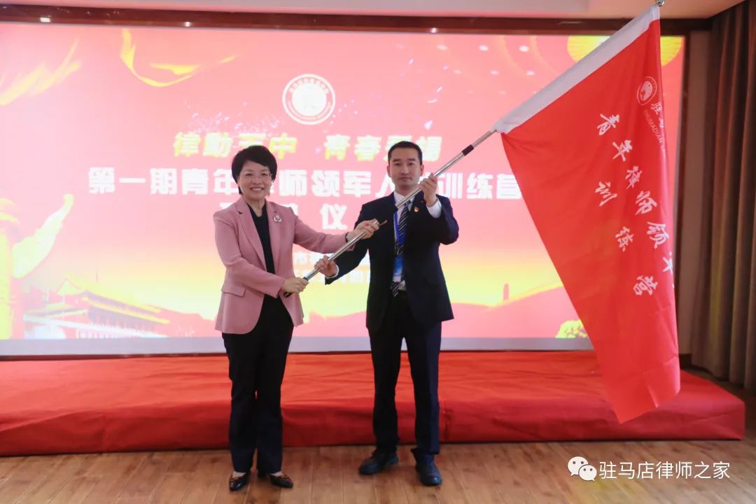 刘红平会长向本期青训营班长、市律师协会副秘书长冯鹏授旗,希望青训营全体学员将“青训精神”接力相传。