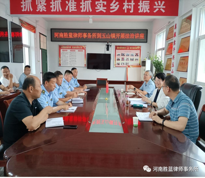 2023年6月29日上午,我所刘红平主任一行深入遂平县玉山镇为该镇综合执法大队全体人员举办行政处罚法讲座。遂平县司法局张春华局长、玉山镇陈哲宇镇长参加了本次法治宣讲课。 刘红平主任和司法局张春华局长、玉山镇陈哲宇镇长一起参观了玉山镇综合执法办案工作场所。