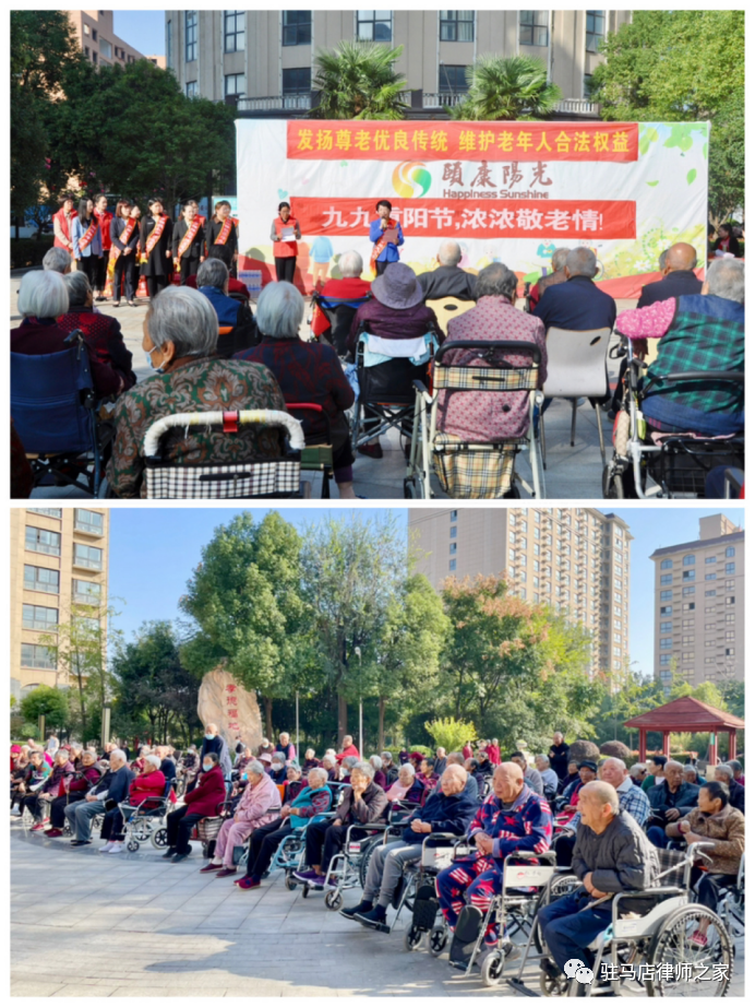 10月21日上午,在九九“重阳节”即将来临之际,驻马店市律师协会组织女律师志愿者走进颐康阳光养老院开展“巾帼律师·情暖老人”重阳情更浓慰问活动。