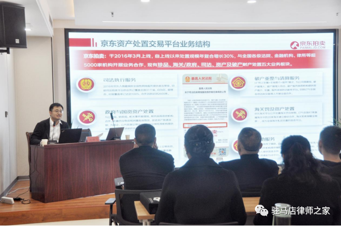京东集团拍卖部高级经理郝晓飞老师介绍《京东拍卖破产强清平台——破产资产黄金处置流程与效率服务》与《京东大数据询价操作流程》,帮助管理人利用信息化技术提升办案效率,得到了与会人员的一致好评。