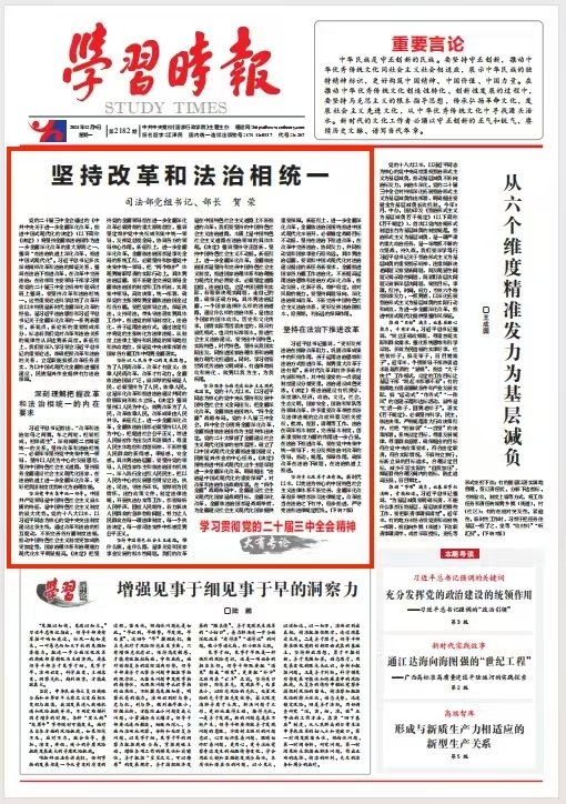 习近平总书记指出,“改革和法治如鸟之两翼、车之两轮,相辅相成、相伴而生”,深刻阐明二者辩证统一的关系。坚持改革和法治相统一,必须牢牢坚持党中央集中统一领导,坚持以人民为中心的发展思想,坚持中国特色社会主义道路,坚持服务全面建设社会主义现代化国家,在法治轨道上进一步全面深化改革,更好把我国制度优势转化为治理效能。